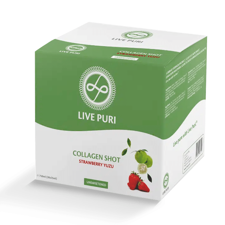 Kollagen-Shots von Live Puri enthalten weder zugesetzten Zucker noch (künstliche) Süßungsmittel. Wir haben uns bewusst für eine möglichst kurze Liste reiner Inhaltsstoffe entschieden. Das Erdbeer- und Yuzu-Aroma ist das Geheimnis des herrlichen Geschmacks unserer Kollagen-Shots.