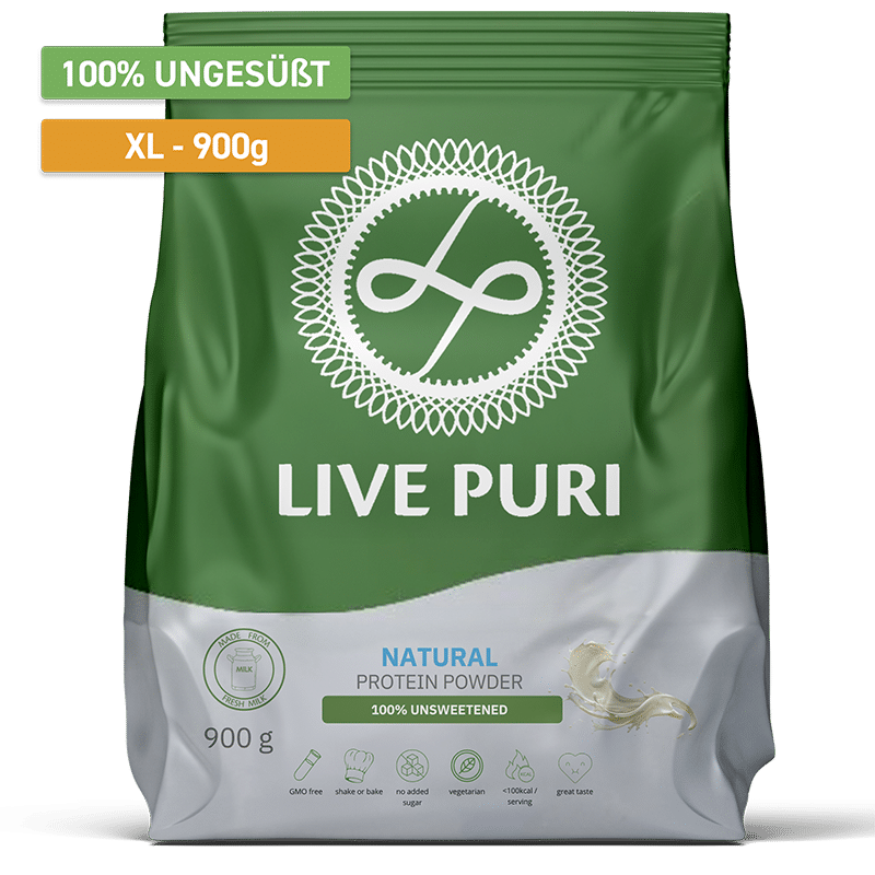 Naturbelassenes ungesüßtes Proteinpulver Neutral von Live Puri ist jetzt auch in der Vorteilspackung erhältlich. Das herrlichste geschmacksneutrale Proteinpulver ohne Zusatzstoffe! Mit nur 2 natürlichen Inhaltsstoffen aus frischer Milch ist dies das reinste natürliche Proteinpulver ohne Aromen, Süßstoffe oder Zucker. Mit einem Eiweißgehalt von 87 %, weniger als 100 Kalorien und nur 2,6 g Kohlenhydraten pro 100 g kannst du dich auf die beste Qualität verlassen. Unsere Kunden beschreiben das Geschmackserlebnis als „herrlich cremig“ und „wunderbar mild“.