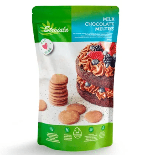 Deze melk chocolade druppels van Steviala doen jouw chocolade hart sneller kloppen! Je vindt ze gegarandeerd lekker want ze zijn gemaakt van 100% natuurlijke kwalitatieve ingrediënten en de smaak is echt onweerstaanbaar. Deze smeltchocolade verlaagd in suikers kan je voor enorm veel dingen kan gebruiken. Het is dus geen suikervrije melkchocolade. Wel bevat deze melkchocolade minder suikers. Namelijk 3,22 gram per portie van 20 gram. Ze smelten super makkelijk en geven een mooi glanzend laagje!