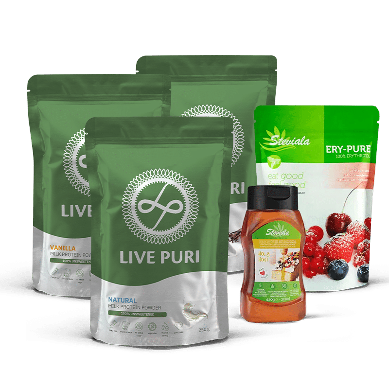 Wist je dat je met de Live Puri eiwitpoeders uitstekend kan bakken? Inmiddels staan er zelfs meer dan 200 eiwitrijke recepten op onze website! Met dit ultieme Live Puri bakpakket haal je voordelig in 1 keer alle benodigdheden in huis om een goeie start te maken. Je krijgt maar liefst 15% korting! Dit zijn onze bakpakket essentials: