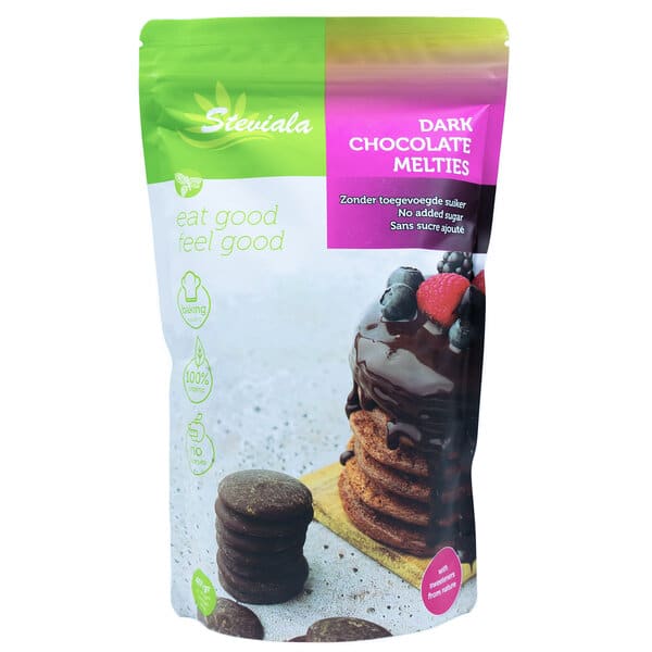 Deze pure suikervrije chocolade druppels van Steviala doen jouw chocolade hart sneller kloppen! Je vindt ze gegarandeerd lekker want ze zijn gemaakt van 100% natuurlijke kwalitatieve ingrediënten en de smaak is echt onweerstaanbaar. Deze pure smeltchocolade zonder suiker past perfect binnen een gezonde leefwijze. Ze smelten super makkelijk en geven een mooi glanzend laagje!