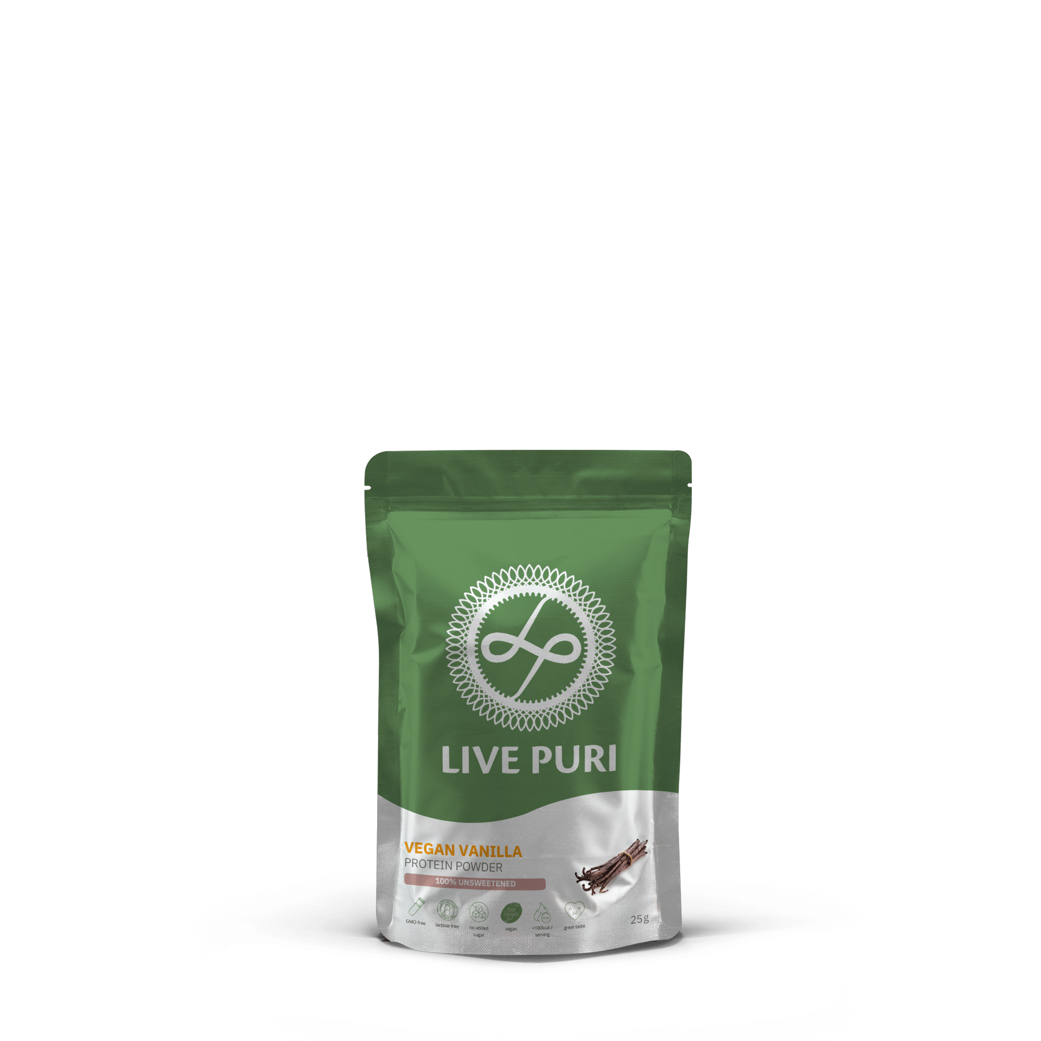 Live Puri vegan vanille eiwitpoeder ongezoet – proef eerst, beslis daarna. Bestel nu het proefzakje en ontdek de kracht van puur plantaardig eiwit.