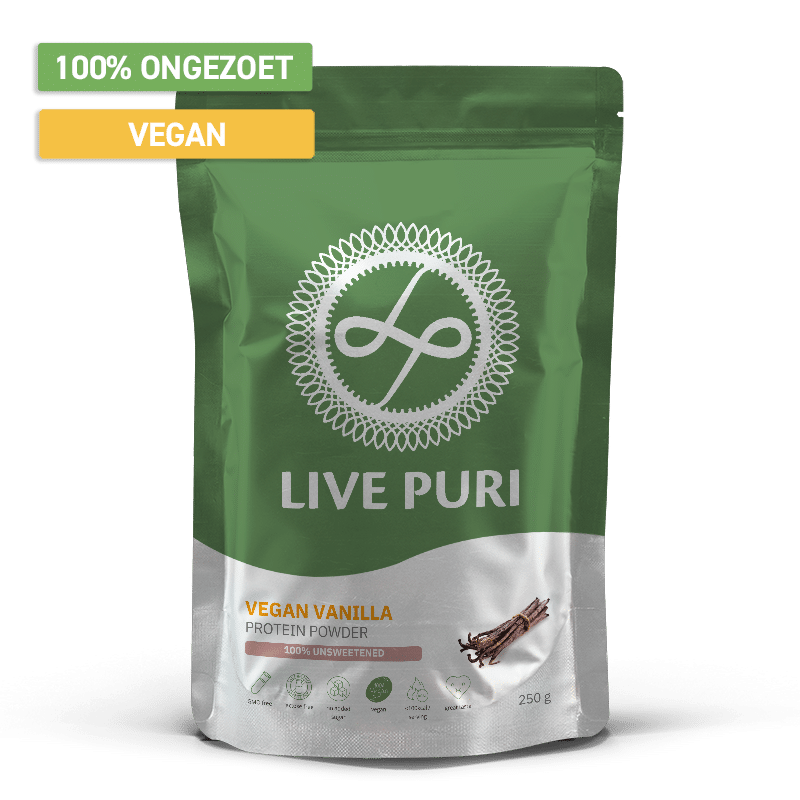 Bovendien is Live Puri vegan eiwitpoeder volledig ongezoet. Zodat jij zelf kan bepalen of je voor een hartig of zoete smaaksensatie gaat. Over hartig gesproken: als je avontuurlijk in de keuken bent, kunnen we ook van harte dit vegan pindakaas eiwitpoeder aanraden!
