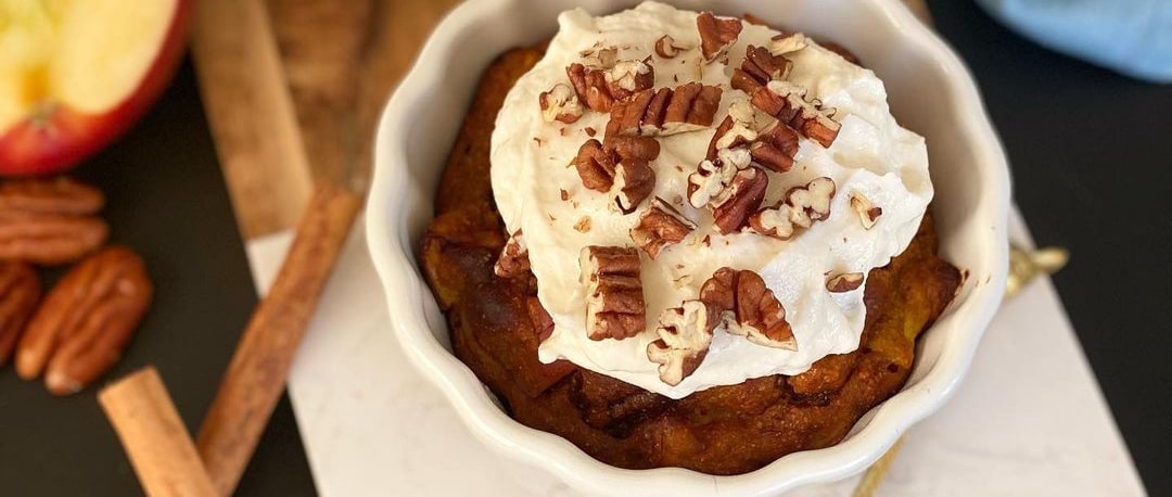 Hierbij hét bewijs dat het eten van appeltaart en baksels met pompoen niet alleen zijn voorbehouden aan het najaar. Deze gezonde gebakjes van Anne (@fitwicht) zijn namelijk jaarrond het maken waard. Is het niet omdat ze bomvol eiwitten, vezels en vitaminen zitten, dan wel omdat de smaak van deze appeltaartjes met pompoen het best tot zijn recht komen als je ze koud eet.