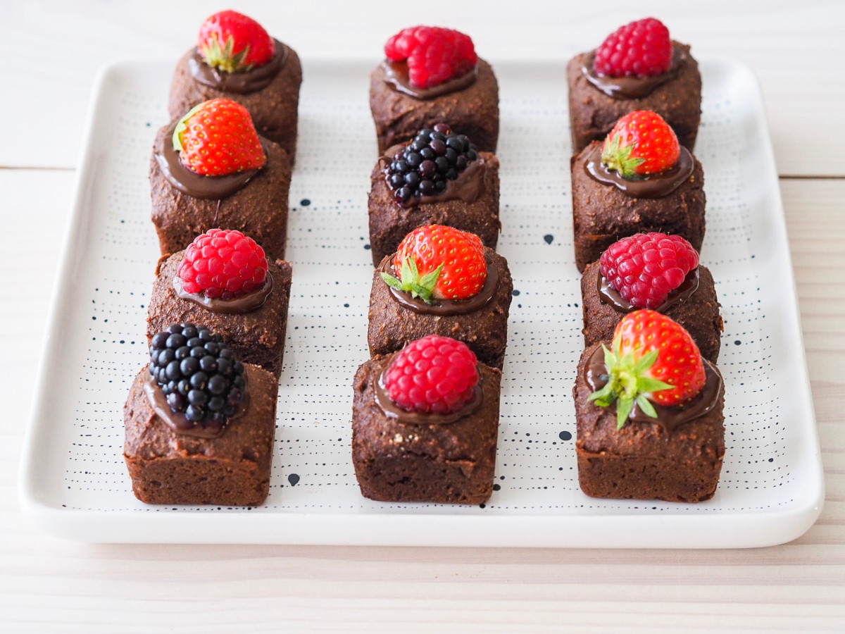 Voor dit recept heb je een mini brownie bakvorm nodig. Heb je die niet in huis? Gebruik dan een gewone bakplaat en snijd de cake nadien in kleine stukjes.