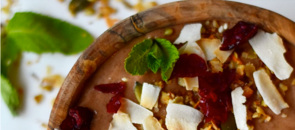 - Schenk in een kom en serveer met muesli, kokosvlokken en gedroogde cranberries.