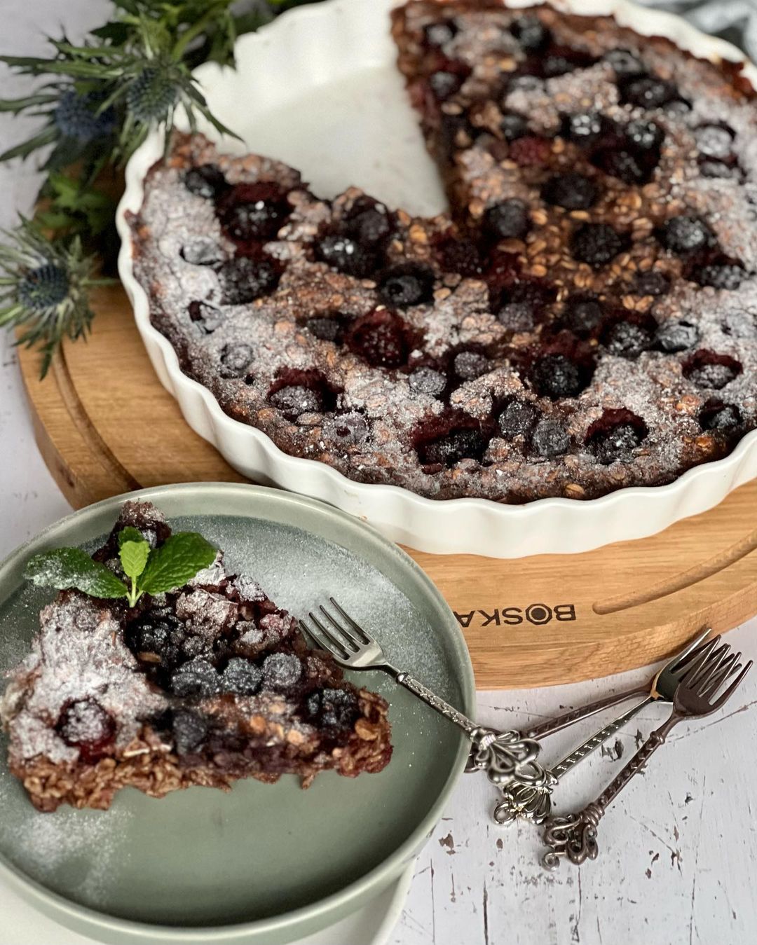 7. Laat de pie afkoelen en opstijven in de koelkast om in mooie punten te kunnen snijden. Gelijk aanvallen kan ook, heb er dan vrede mee dat hij uit elkaar valt op je bord.