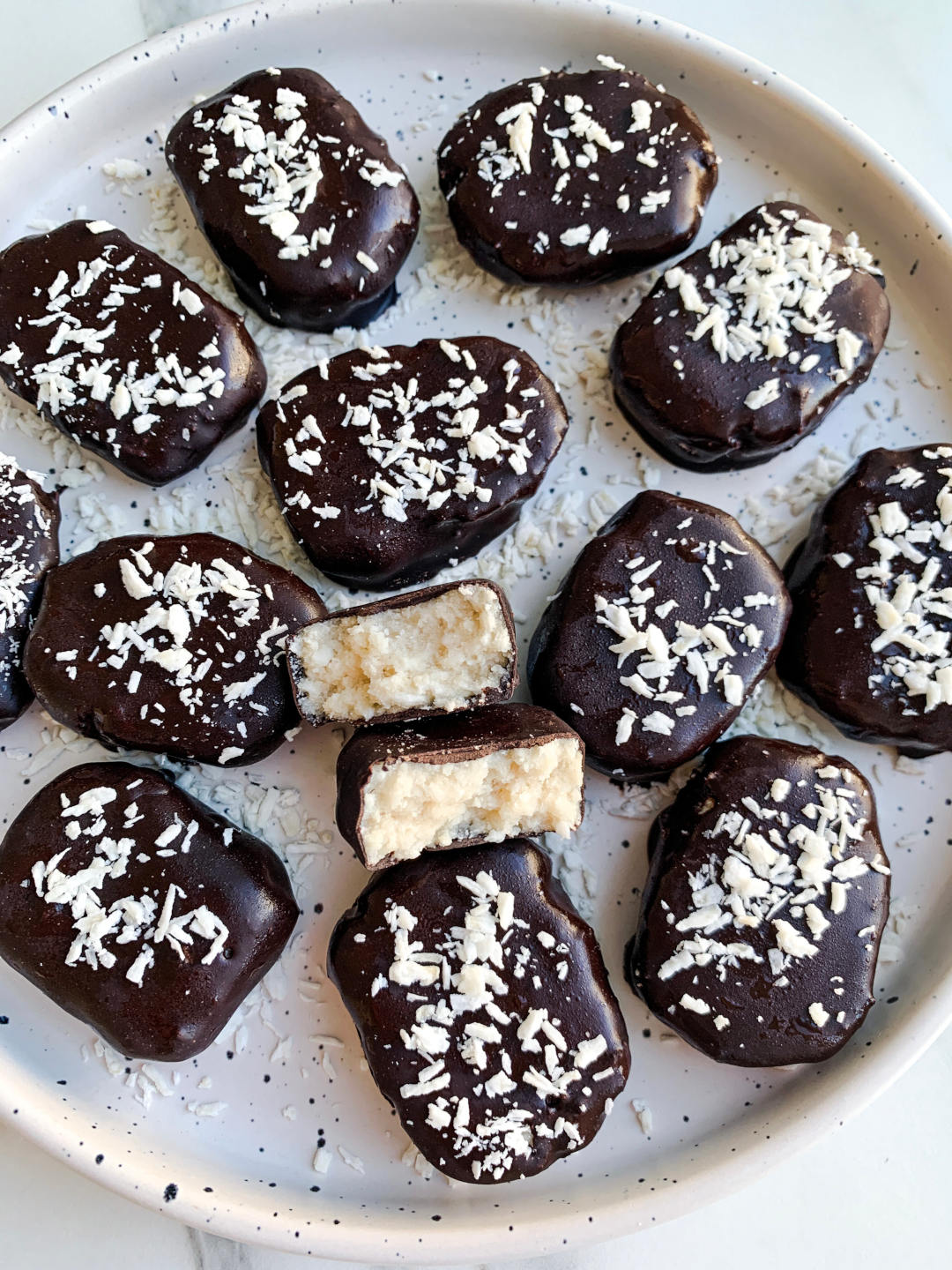 Een lekker paaseitje of bonbonnetje… Heerlijk toch? Alleen jammer dat de voedingswaarden vaak zo onvoordelig zijn… Met het recept van deze eiwitrijke bounty’s maak je zelf de ideale zachte eiwitrijke kokos vulling omringd door een knapperig chocolade laagje.