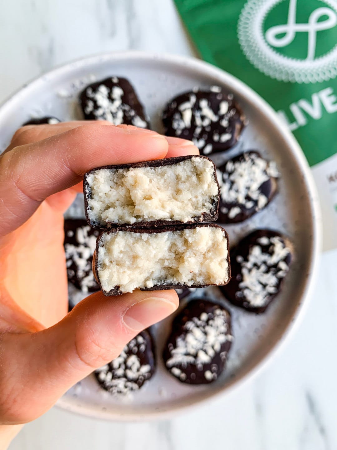 Dit recept en de foto’s van deze eiwitrijke bounty’s zijn van Livia. Haar creaties en oprecht inkijkje in haar leven en kan je volgen op Instagram of op haar website!