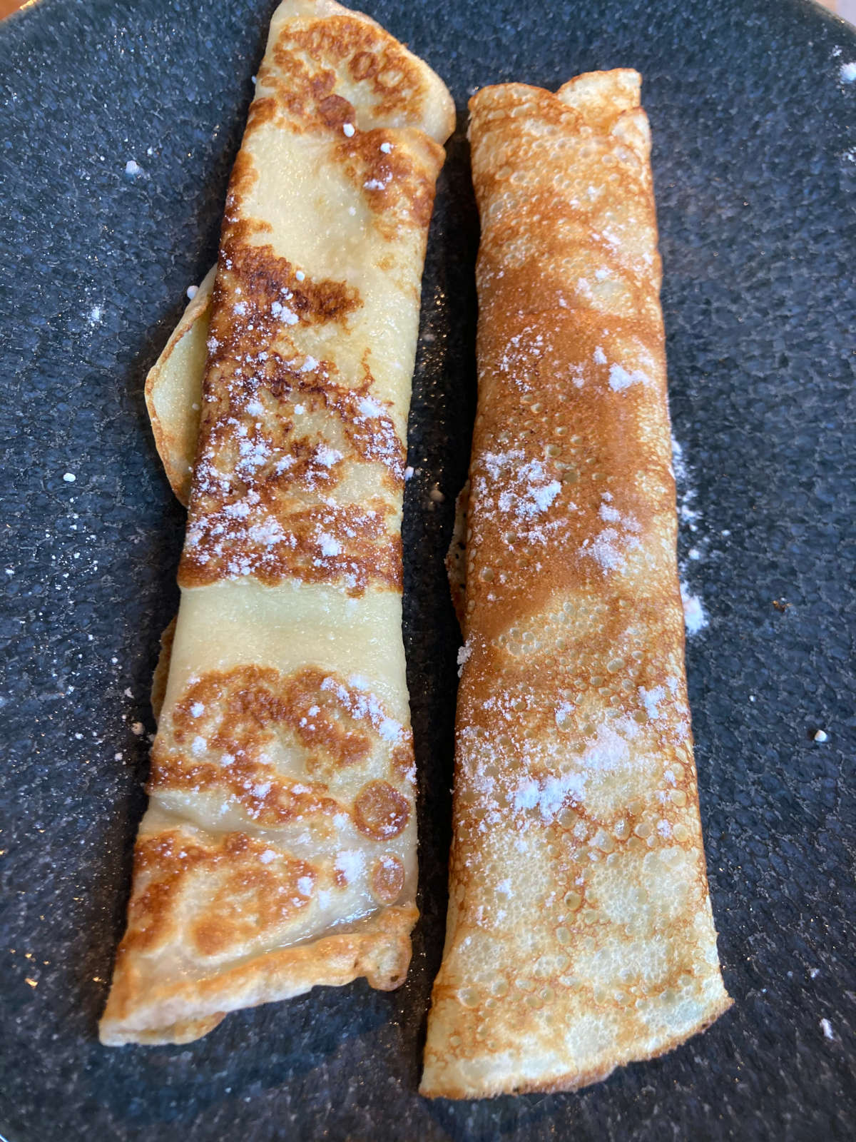 Het beslag is lekker dun dus je kan het makkelijk egaal in de pan verspreiden. En het eindresultaat is een heerlijk zacht pannenkoekje. Ik vind dit een veel lekkerder beslag dan een gewone pannenkoek.