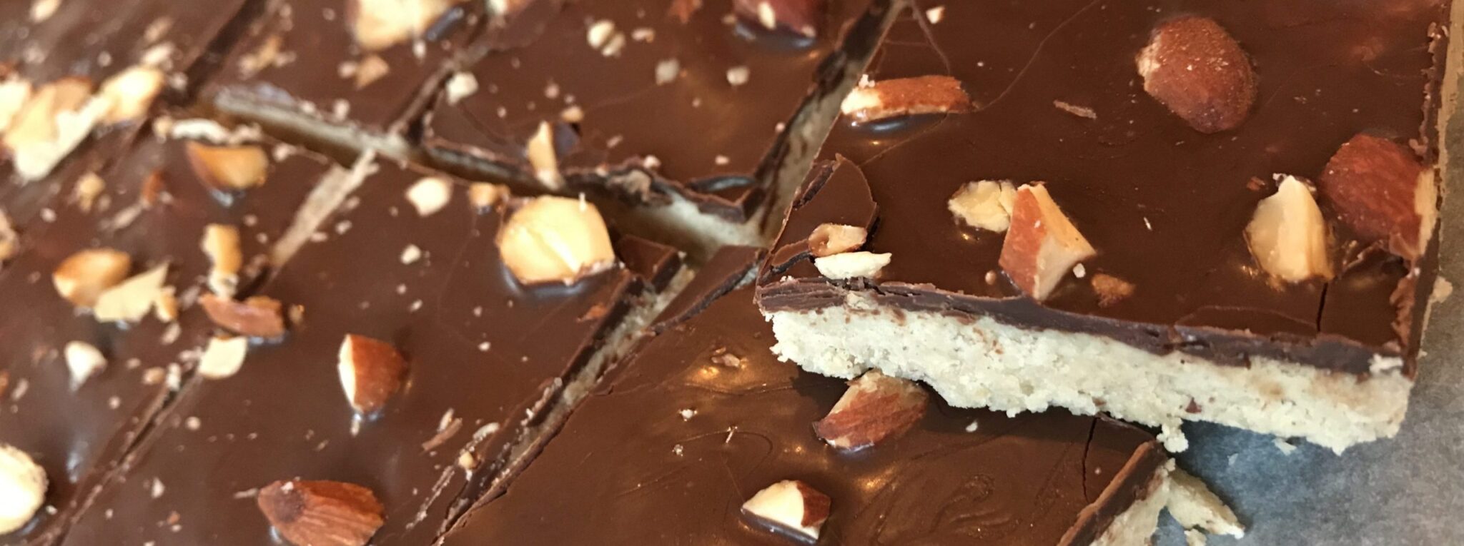 lunchrepen met chocolade en gehakte amandelen