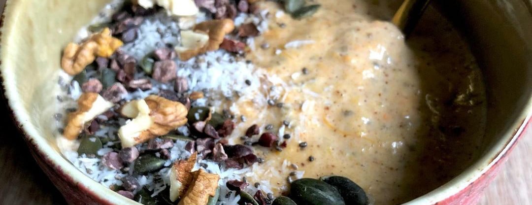 Met deze kou buiten is niets fijner dan ontbijten met een kom warme pap. Maar wat als je koolhydraatarm eet? Hedwig heeft het antwoord! En ze deelt haar verwarmende pompoen ontbijtrecept met jou! Met ons eiwitpoeder, pompoen en nog wat andere ingrediënten maak je een pompoenpap die niet onder doet aan havermout-, griesmeel- of rijstepap. Briljant toch?