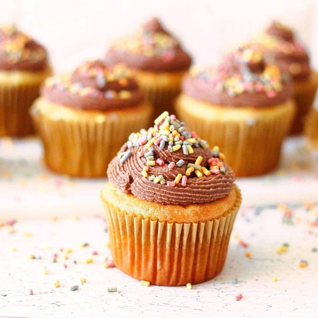 - Verdeel vervolgens de frosting over de koolhydraatarme Rainbow cupcakes. Daarna strooi je er nog suikervrije Rainbow sprinkles overheen. Zet de koolhydraatarme Rainbow cupcakes met chocolade vervolgens in de koelkast. De frosting wordt dan in de koelkast stijf. Bewaar ze daarna in een afgesloten trommel in de koelkast voor het beste resultaat na een paar dagen nog.