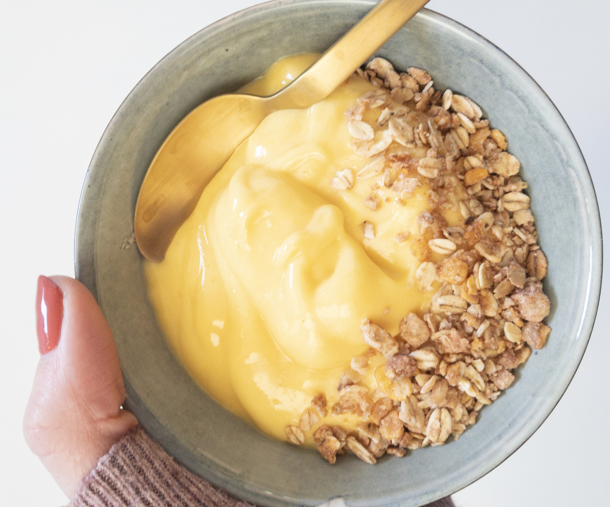 De verse mango zorgt ervoor dat de structuur lekker romig en vol wordt. Het eiwitpoeder geeft je bowl body en geeft je body een gezonde boost. Wij voegen ook wat kurkuma toe om de smaken helemaal af te maken. Kurkuma is ook nog eens supergezond!