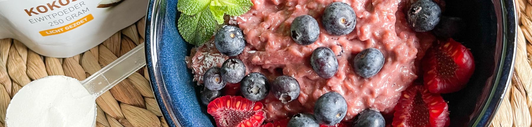- toppings: kokosrasp, wat blauwe bessen en frambozen