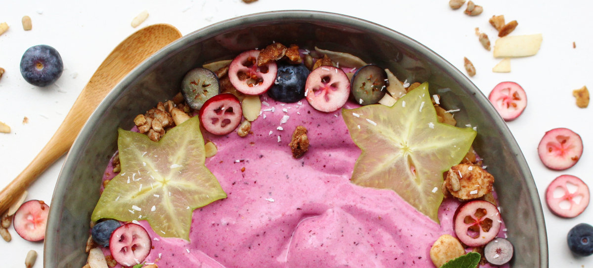 Laura van Lauras_super_vood maakt zulke amazing lekkere gerechten en smoothie bowls. Zo maakte ze deze proteine cashew smoothie met cranberries en kokos eiwitpoeder.