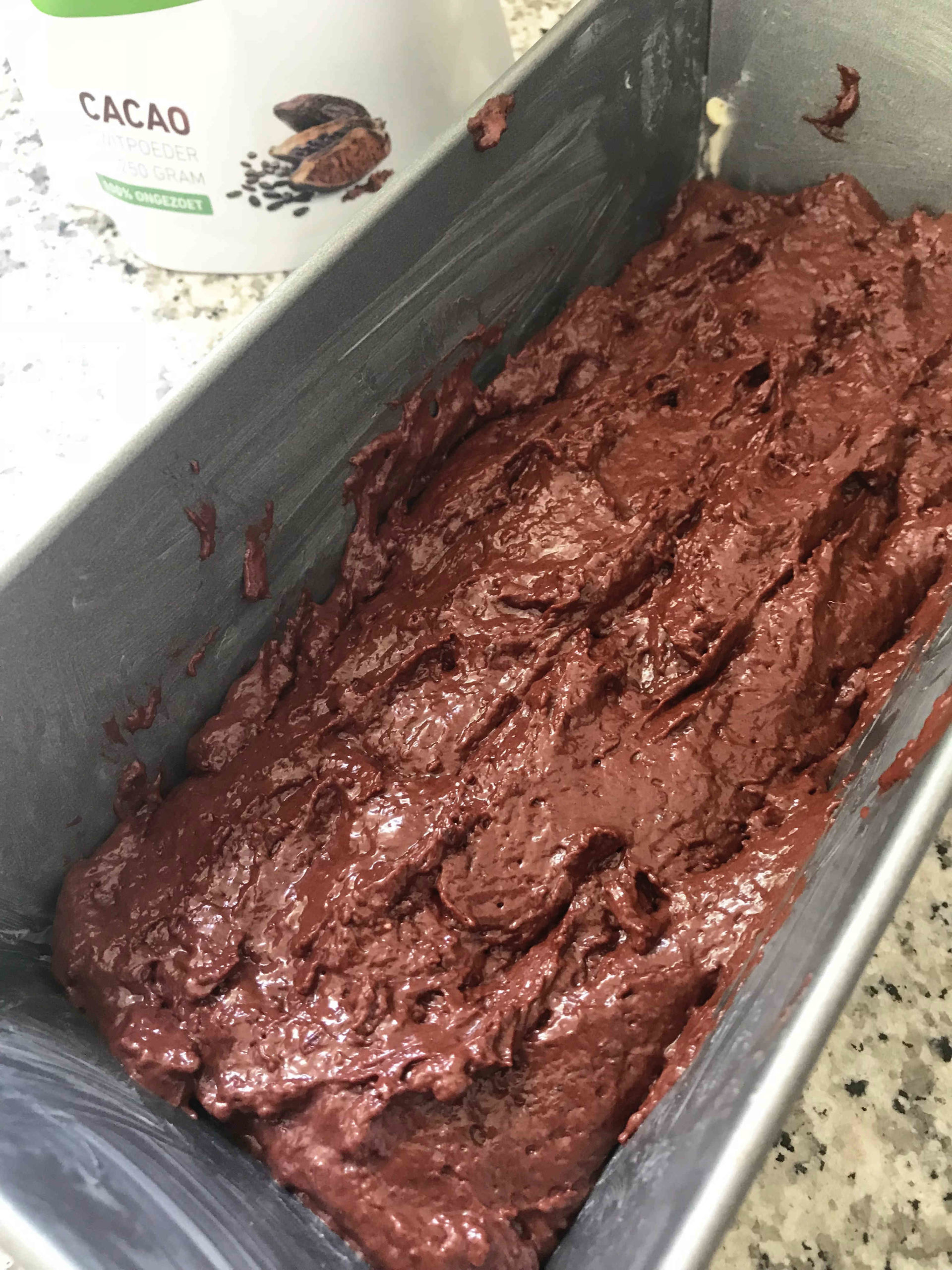 - Vet de cakevorm in met wat vetstof en giet het beslag in de vorm.