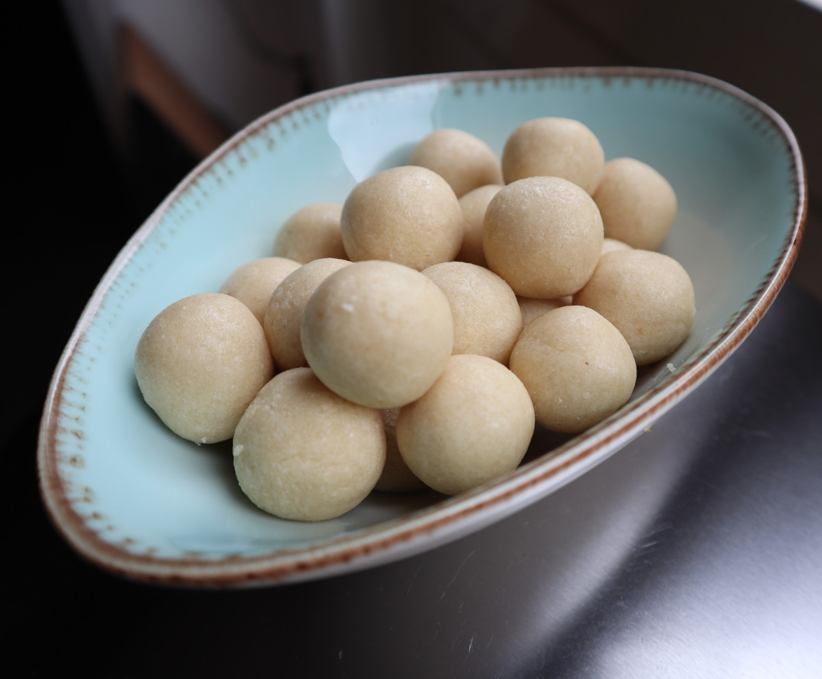 - Rol er met de hand bolletjes van. Of kneed er een varkentje van (als je dat kan).