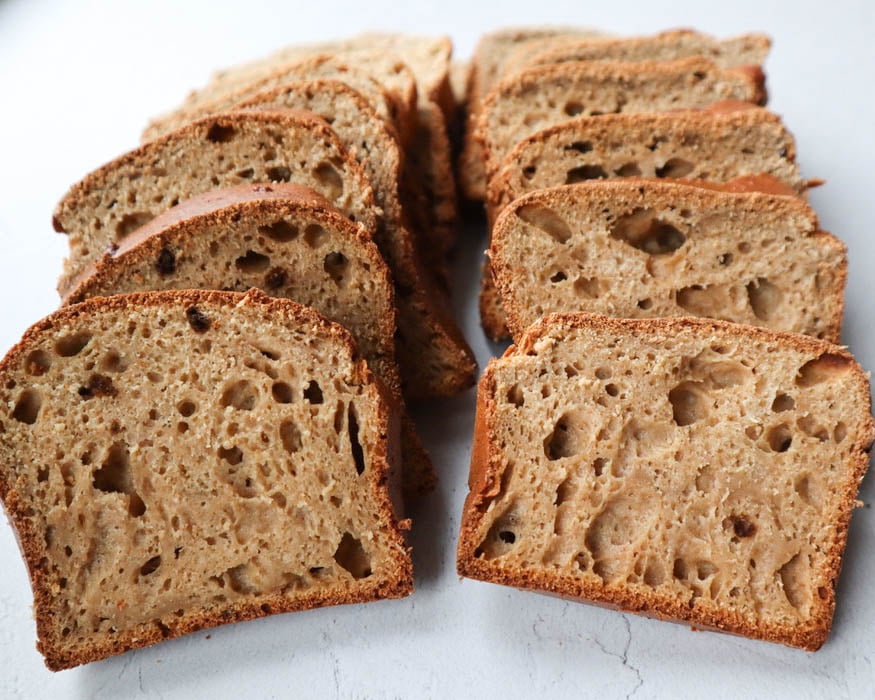 Af en toe krijgen we wel eens een vraag van gebruikers hoe ze hun baksels met eiwitpoeder kunnen laten slagen. Soms gebeurt het wel eens dat een eiwitrijke cake bij iemand mislukt is. Als we dan even doorvragen, komt altijd de aap uit de mouw: er is een ander merk eiwitpoeder gebruikt. Dat valt natuurlijk altijd te proberen, maar Live Puri is werkelijk uniek. Doordat we 2 eiwitsoorten uit verse melk gebruiken, kan je ons eiwitpoeder niet zo maar vervangen door bijvoorbeeld een gewoon wei eiwitpoeder. De consistentie, luchtigheid en het uiteindelijke bakresultaat zijn dan heel anders. Om nog maar te zwijgen over de smaak natuurlijk. Enne, 16 gram eiwit per plakje: dat is niet mis! Ook dat haal je alleen met een top kwalitatief eiwitpoeder.