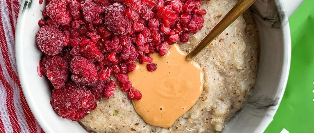 Dat pindakaas en frambozen een beproefde combinatie zijn wist je misschien al. Wat je misschien nog niet wist, is dat wij een Vegan Pindakaas eiwitpoeder hebben. Ja, écht!