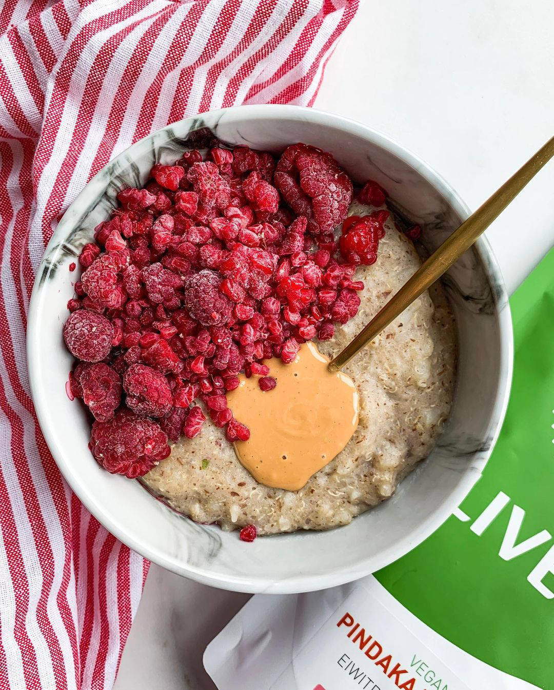 Dit recept en de foto’s van deze vegan peanutbutter & jelly quinoa havermout zijn van Livia. Haar creaties en oprecht inkijkje in haar leven en kan je volgen op Instagram of op haar website!