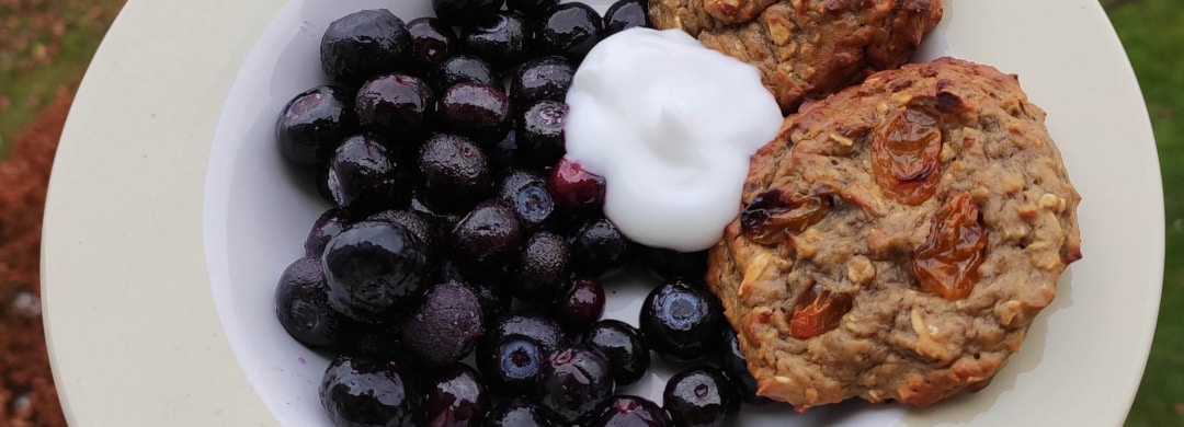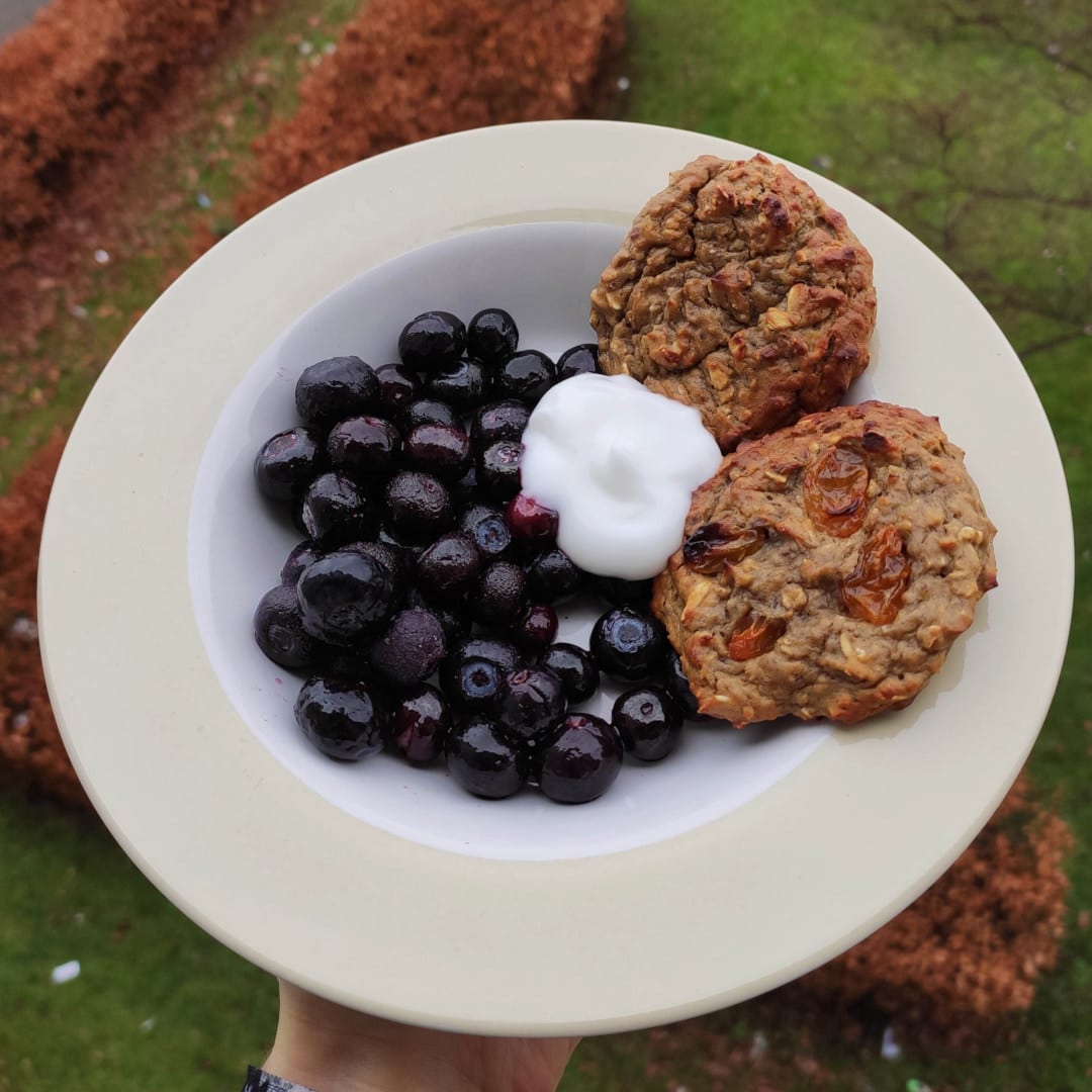 - Laat ze afkoelen en serveer met wat yoghurt en blauwe bessen of smul er gelijk van!